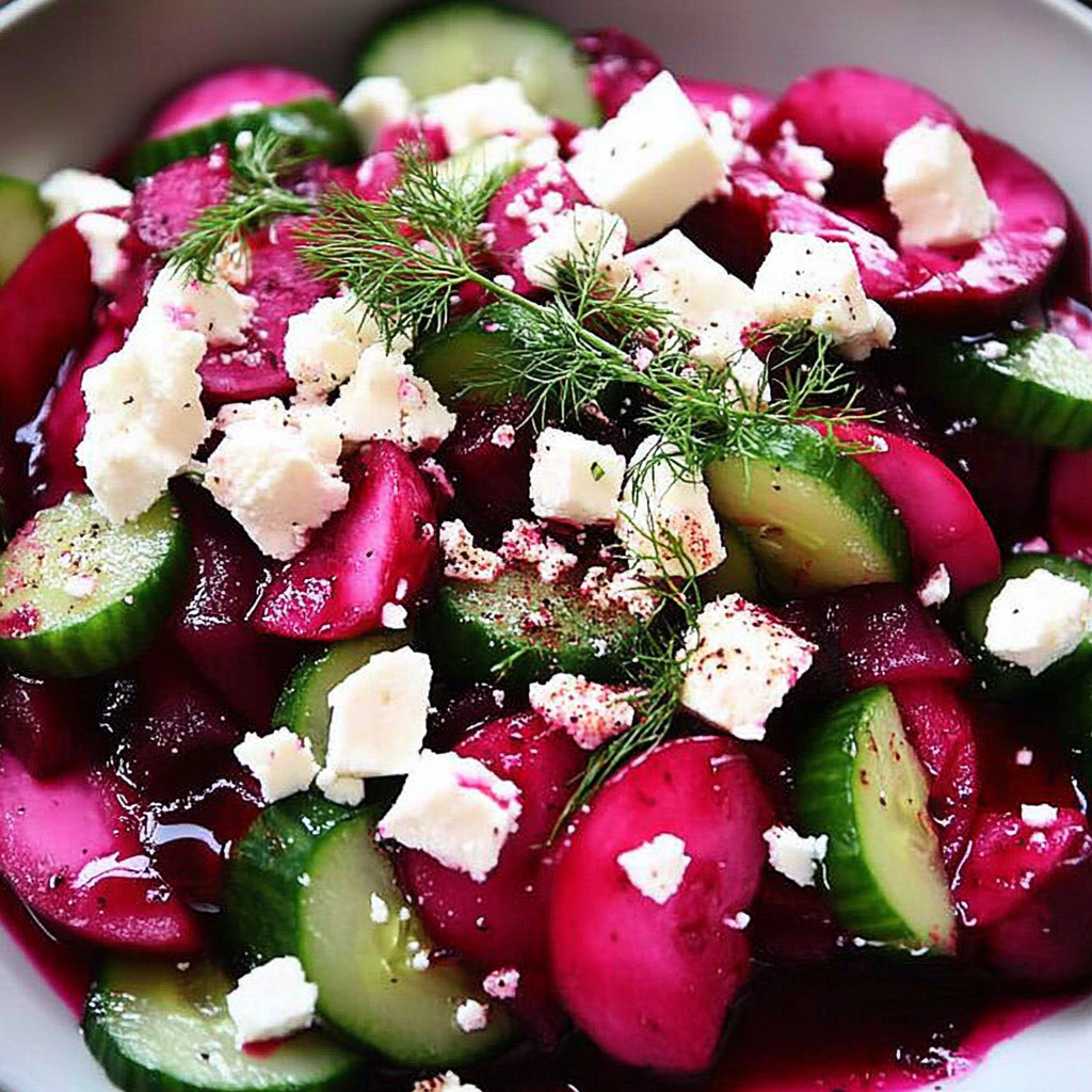 Indulge in a delightful blend of earthy beets, creamy feta, and refreshing cucumbers in this stunning Beet Salad with Feta, Cucumbers & Dill. Perfect for any occasion, this vibrant dish captivates both the eyes and palate, making it an unforgettable addition to your table.