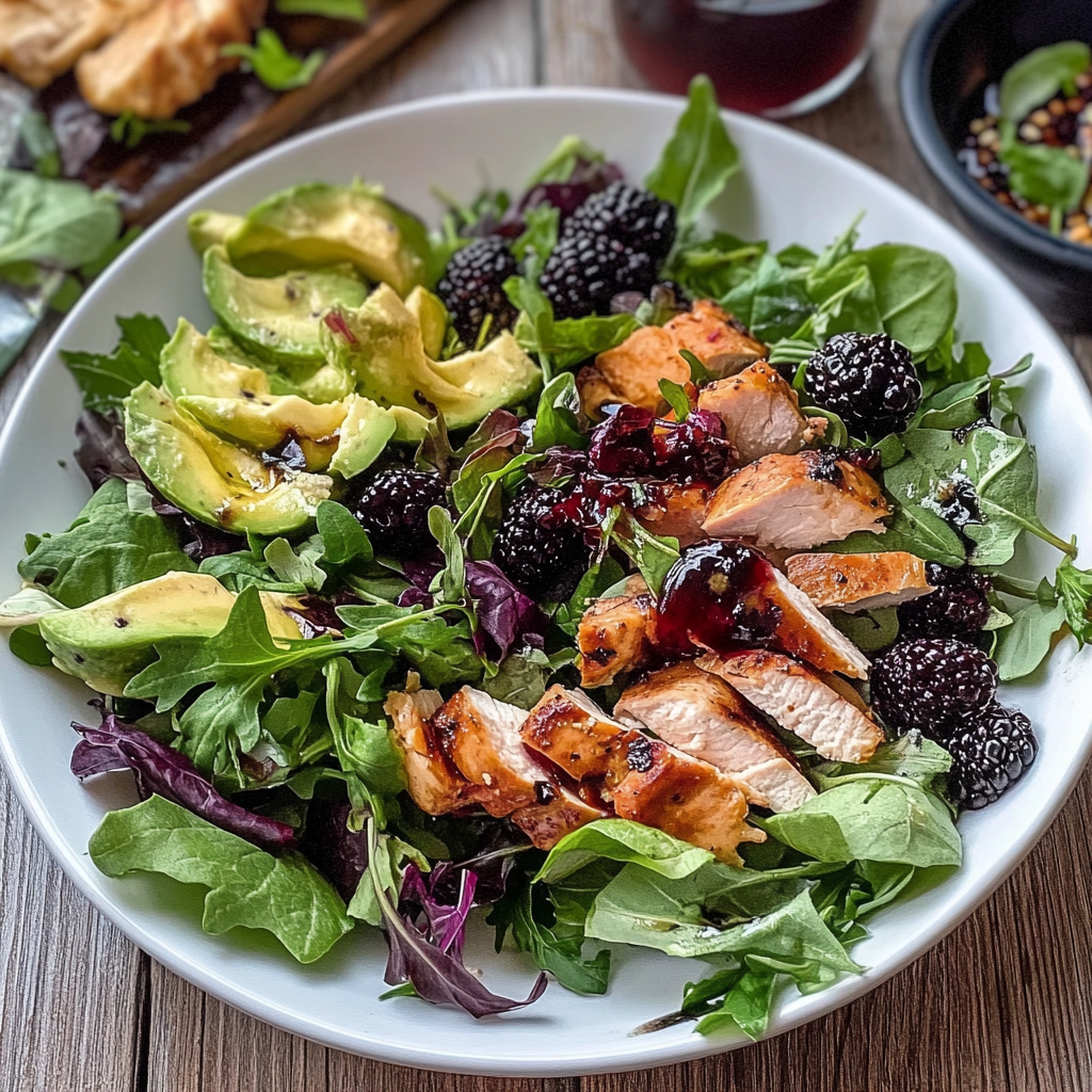 In summary, Blackberry Chicken Salad is a deliciously healthy dish that combines protein-rich chicken with sweet blackberries and vibrant greens. This salad not only offers great taste but also numerous nutritional benefits. Preparing this recipe at home is easy and allows for customization based on your preferences. Whether enjoyed as a quick lunch or dinner option, Blackberry Chicken Salad is sure to delight your taste buds and nourish your body! For more inspiration, check out this Chickpea Salad recipe .