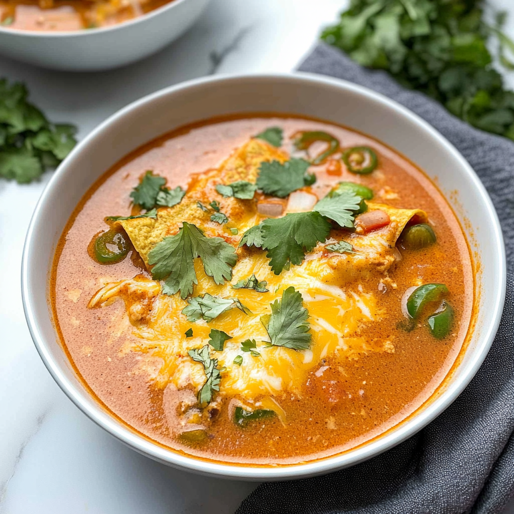 Chicken Enchilada Soup is a heartwarming dish that captures the vibrant essence of Mexican cuisine. This creamy, flavor-packed soup combines tender shredded chicken, zesty spices, and nutrient-rich ingredients, making it perfect for chilly evenings or family gatherings. With its inviting aroma and rich texture, each bowl provides comfort and satisfaction. Easy to prepare and customize, this delightful soup will surely become a favorite in your household.