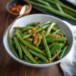 Taste your chili garlic green beans and adjust seasoning if necessary—perhaps another pinch of red pepper flakes if you’re feeling adventurous! Transfer them onto a serving platter.
