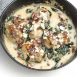 Creamy Bacon Spinach Feta Chicken Skillet