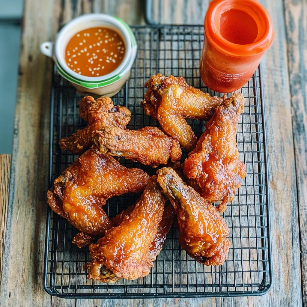Fry the Chicken: Now comes the exciting part! Heat about 4 cups of vegetable oil in a deep fryer or a large pot until it reaches a temperature of 350°F (175°C). It’s essential to use a thermometer here to ensure perfect frying; too hot and they’ll burn quickly—too cool and they won’t crisp up properly. Fry the wings in batches for about 8-10 minutes or until they turn a gorgeous golden brown. Use tongs to turn them halfway through cooking for an even fry. The sizzling sound as they cook will have you eager for the finished dish!