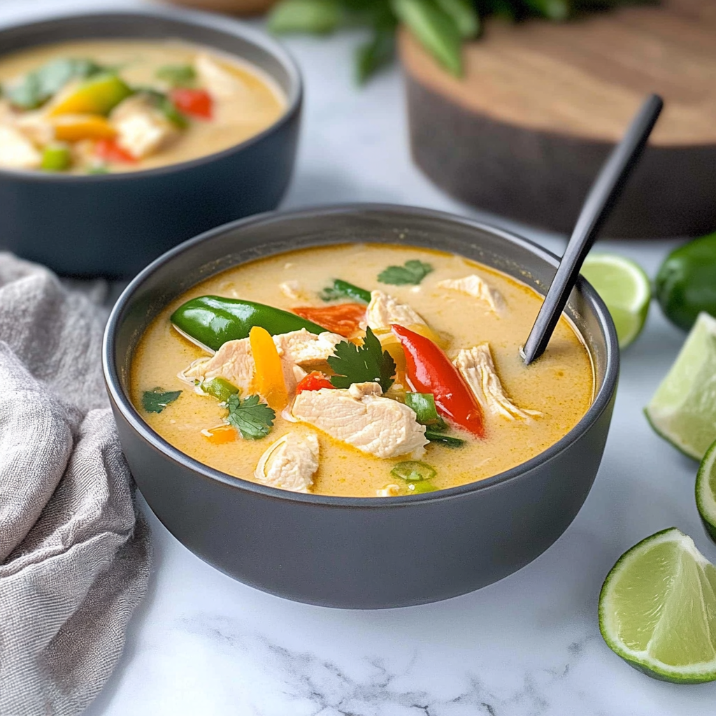 Easy Thai Chicken Soup is a flavorful dish that combines tender chicken with aromatic herbs and spices, creating a delightful experience. This soup typically features ingredients like coconut milk, lime juice, and fresh vegetables. It’s perfect for those who crave a comforting yet exotic meal. The balance of creamy and tangy flavors makes it a popular choice in Thai cuisine. You can easily customize this soup by adding your favorite vegetables or adjusting the spice level to suit your taste.