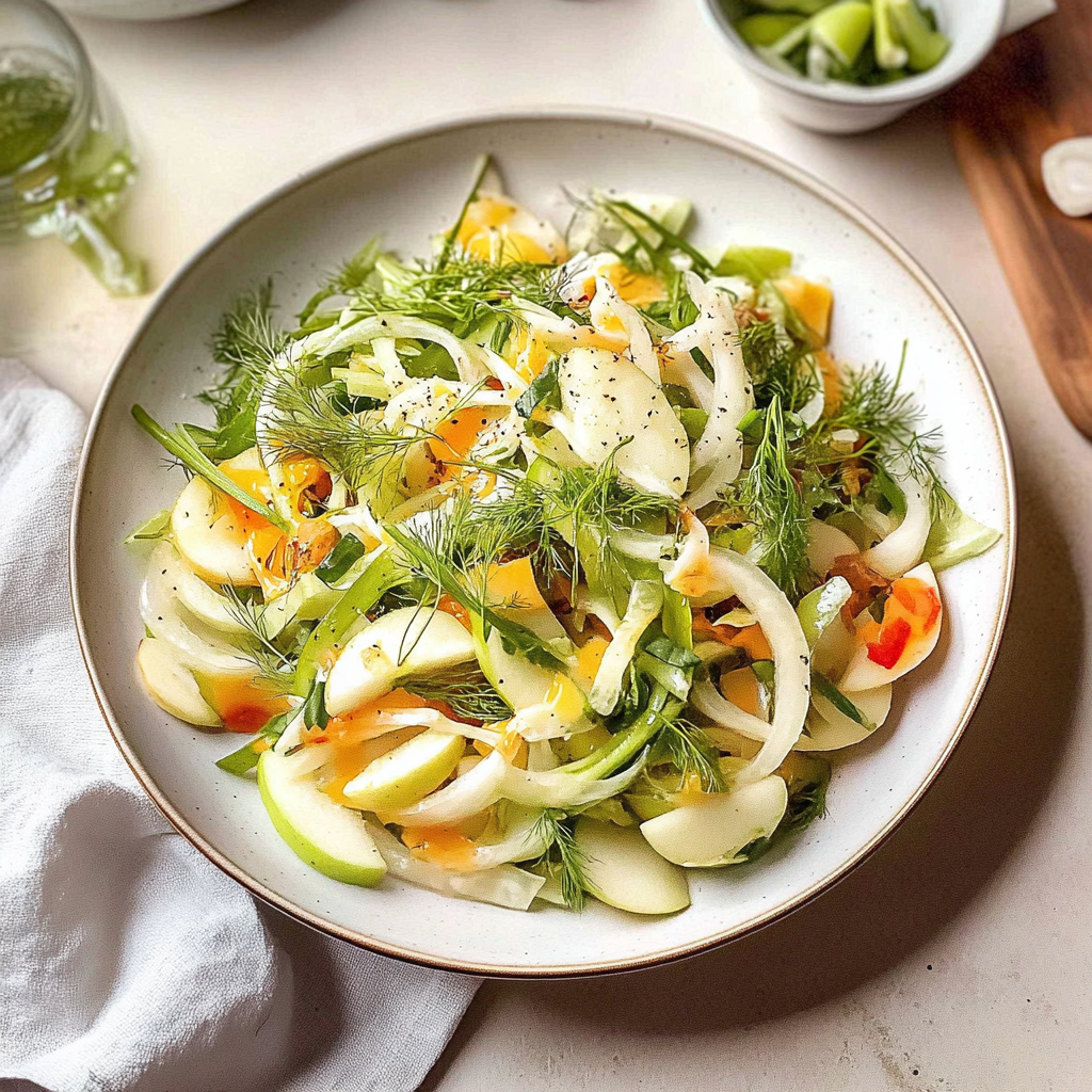 Fennel Apple Salad is a refreshing dish that combines crisp fennel bulbs with sweet apples, often enhanced by a tangy dressing. This salad highlights the unique anise flavor of fennel, balancing it beautifully with the sweetness of apples. Typically, it includes ingredients like lemon juice, olive oil, and nuts for added texture. This dish not only offers a delightful crunch but also packs a nutritional punch, making it a perfect side for various meals or a light lunch option.