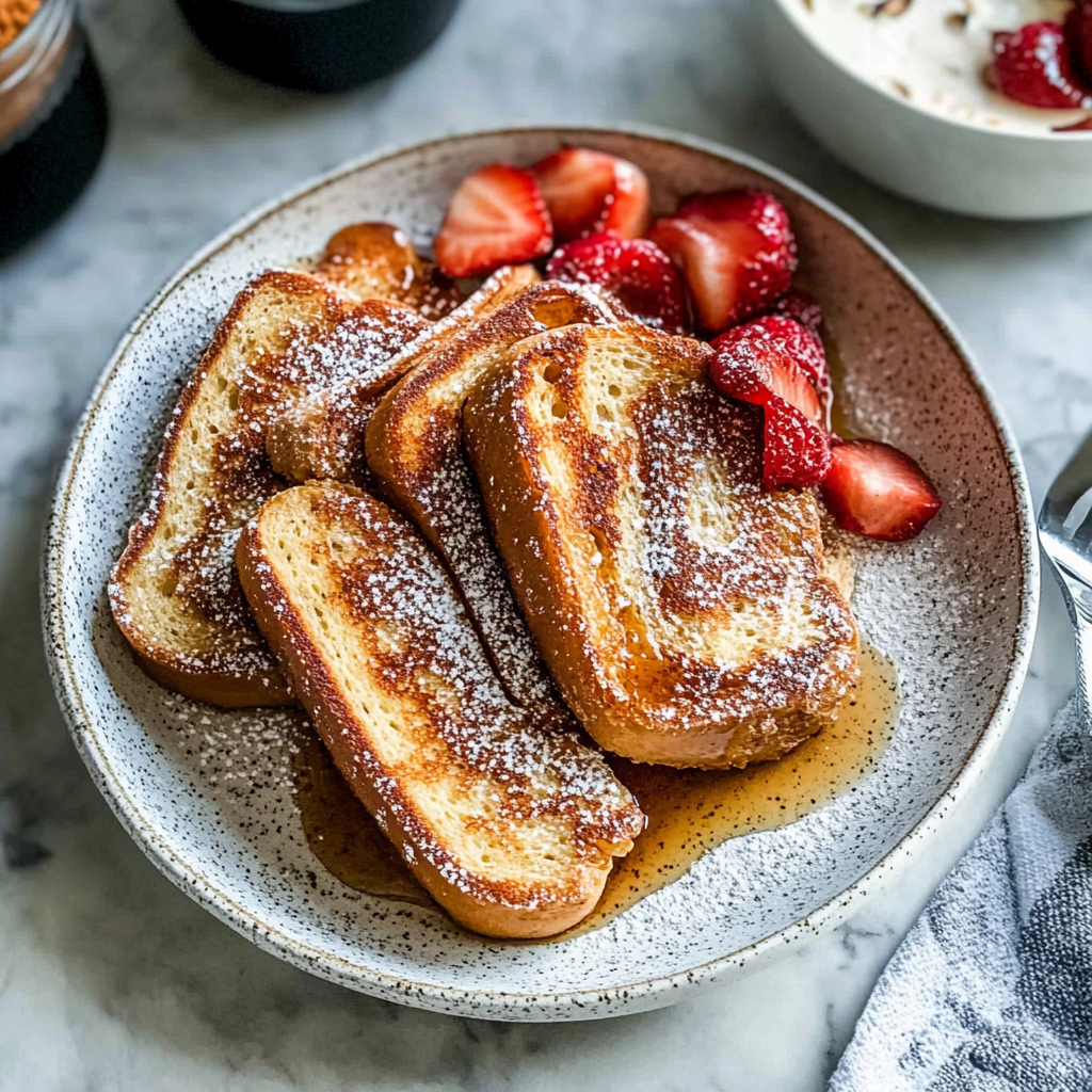 Indulge in the classic delight of homemade French toast, where thick slices of brioche or challah are perfectly soaked in a creamy custard made with eggs, milk, and a hint of cinnamon. This comforting breakfast transforms any morning into a gourmet experience, whether you’re treating yourself on a lazy Sunday or hosting friends for brunch. With customizable toppings like fresh fruits and maple syrup, this recipe is sure to impress everyone at the table!