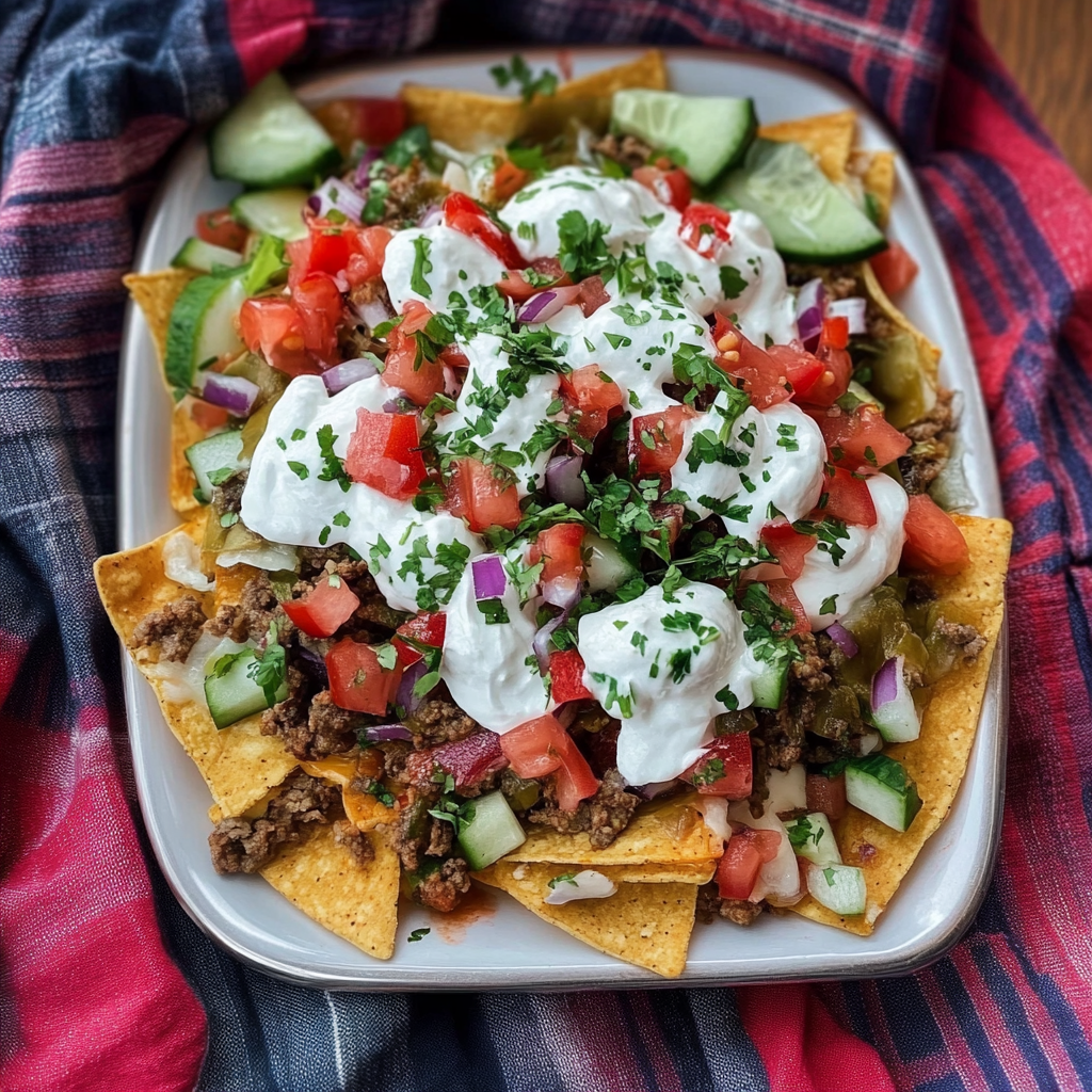 Greek nachos are a delightful twist on a classic favorite, blending crispy pita chips with the vibrant flavors of feta, olives, and fresh vegetables. Topped with tangy tzatziki sauce, this dish is perfect for gatherings or casual snacking.
