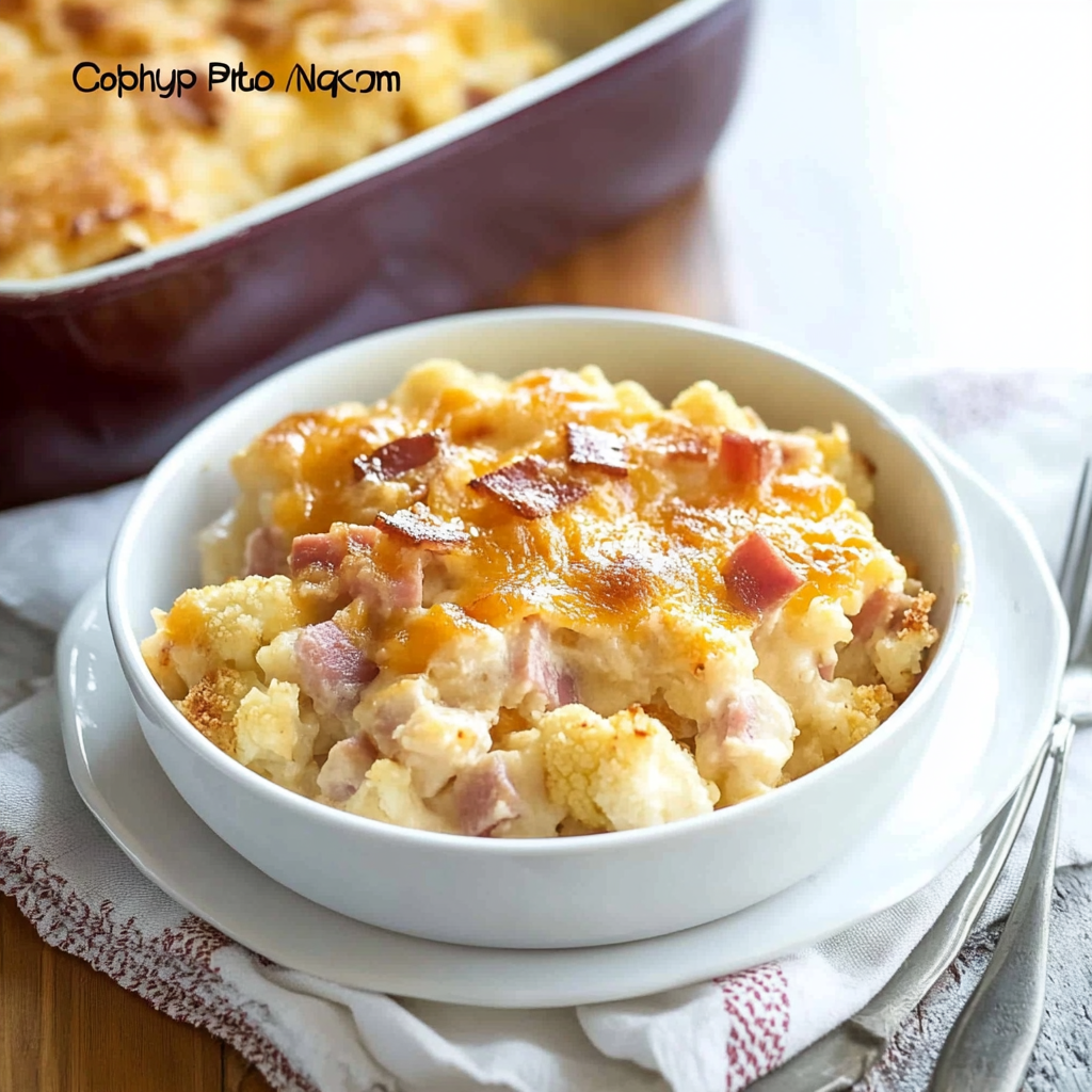 Keto Ham and Cauliflower Casserole is a delicious low-carb dish that combines tender cauliflower with savory ham, cheese, and a creamy sauce. This casserole is perfect for those following a ketogenic diet, as it provides high protein and low carbohydrates while satisfying those comfort food cravings. Low Carb Broccoli Cauliflower Salad The dish is easy to prepare, making it an ideal option for weeknight dinners or meal prep. Its rich flavors and hearty texture make it a favorite among families looking to enjoy healthy meals without sacrificing taste. For more inspiration, check out this Chicken Enchilada Casserole Recipe.