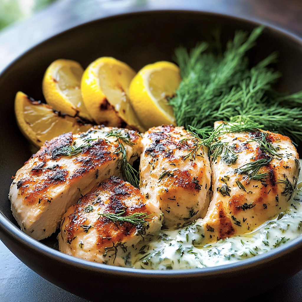 - Marinate the chicken: Whisk together lemon juice, olive oil, garlic, dill, salt, and pepper in a bowl. Coat chicken breasts and refrigerate for at least 30 minutes.