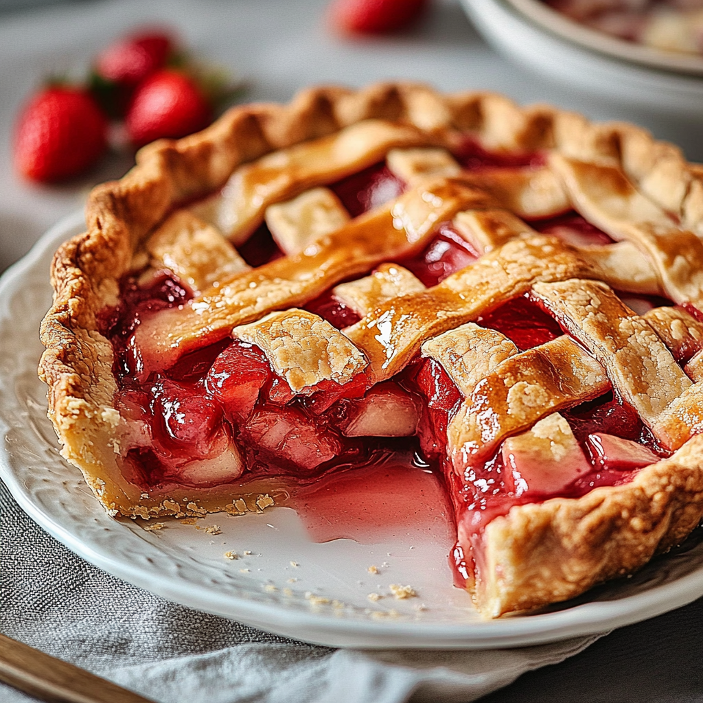 Savor the delightful blend of sweet strawberries and tangy rhubarb in this classic Strawberry Rhubarb Pie. With a buttery, flaky crust and vibrant colors, this dessert is perfect for any occasion, bringing joy to your table and memories to your heart.