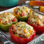 Store leftover stuffed bell peppers in an airtight container in the fridge for up to three days. To reheat, pop them in the oven at 350°F until warmed through, or microwave them if you’re in a hurry—no judgment here!
