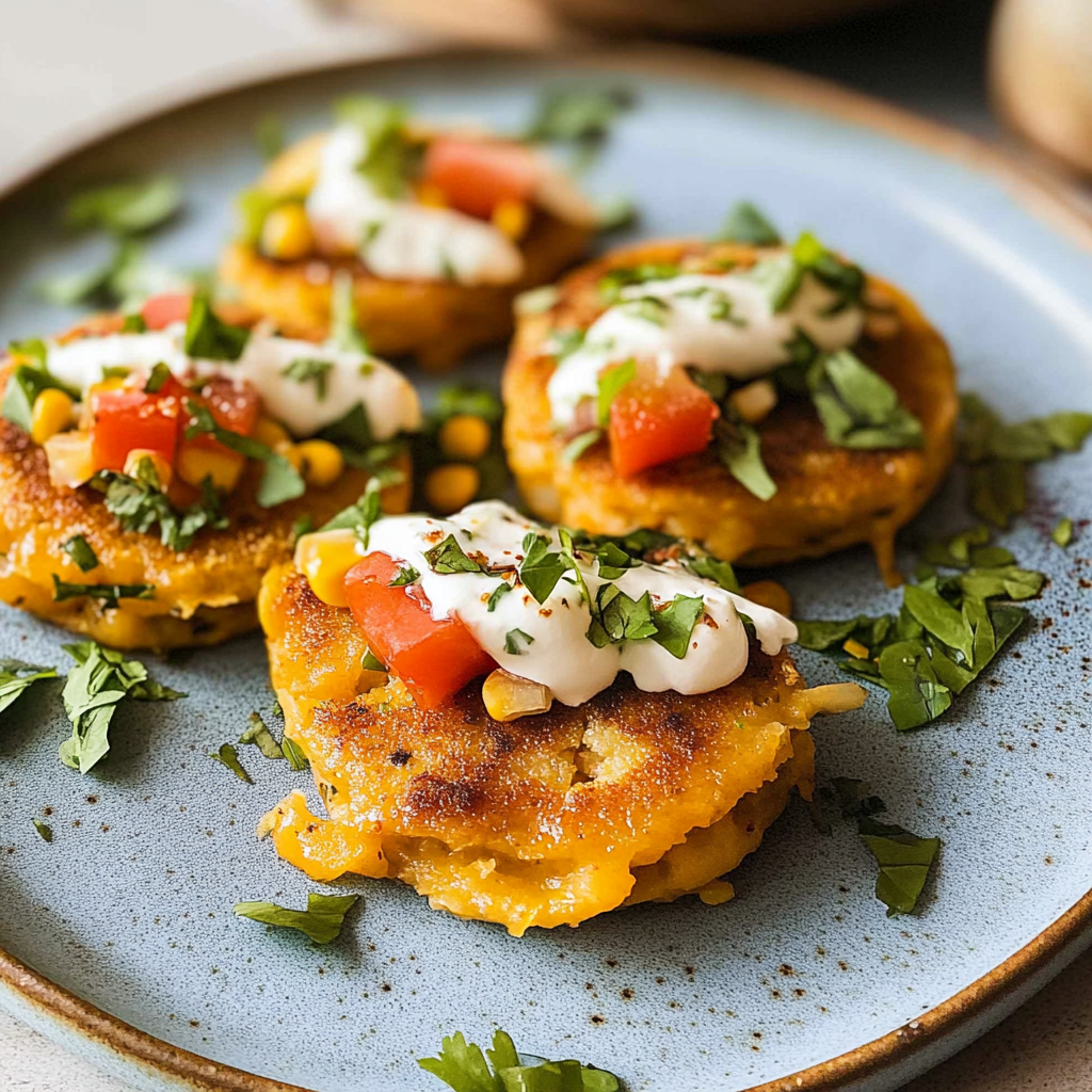 Start by sautéing onions and garlic until fragrant, then add corn and cook briefly. Combine with masa harina, water, and spices. Shape into cakes and sear until golden brown while preheating your oven to finish cooking them perfectly.