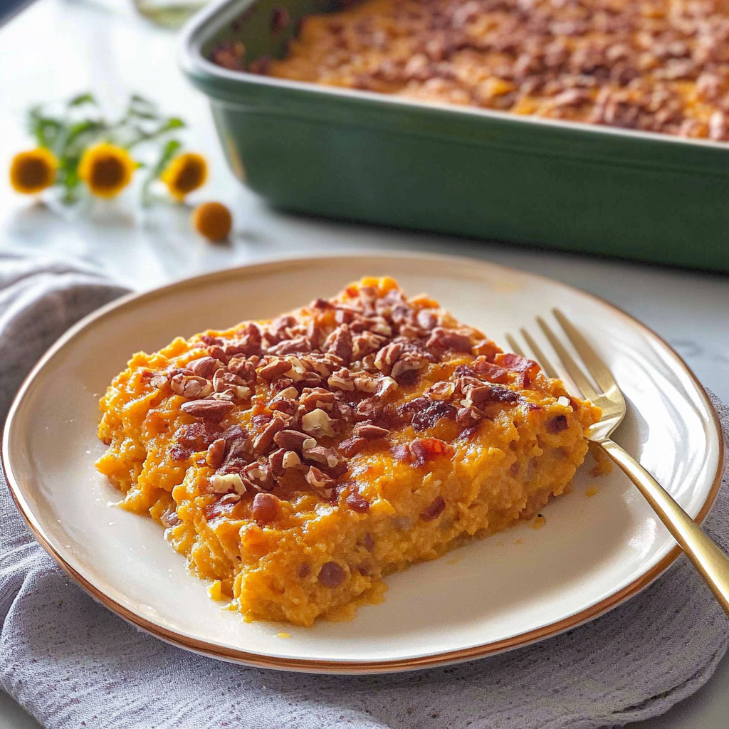 In summary, Sweet Potato Casserole is a delightful dish that combines creamy sweet potatoes with various toppings to create a comforting side for any meal. You can easily prepare it ahead of time or customize it with different flavors to suit your taste preferences. With its rich history in holiday traditions, this casserole not only pleases the palate but also brings families together around the table. Enjoy making this classic recipe at your next gathering!