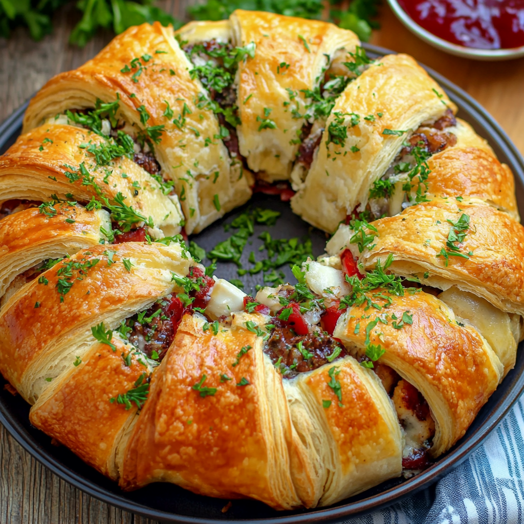Turkey Crescent Roll Ring is a mouthwatering dish that perfectly blends flaky crescent roll dough with savory ground turkey, melty cheese, and fresh spinach. This easy-to-make recipe is ideal for family gatherings or casual get-togethers, delivering comfort and flavor in every bite. Whether served as a main dish or an appetizer, this delightful ring is sure to impress your guests with its golden-brown exterior and delicious filling.